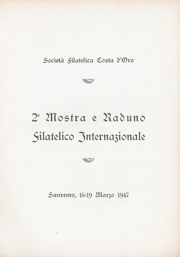 SOCIETA FILATELICA 2a Mostra e Raduno Filatelico Internationale, San Remo 1947, 122 pages, broché. T.B.