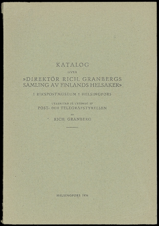 GRANBERG, R. Katalog over Direktor R. Granbergs Samling av Finlands Helsaker, éd. 1934, 100 et 4 planches, broché. T.B.